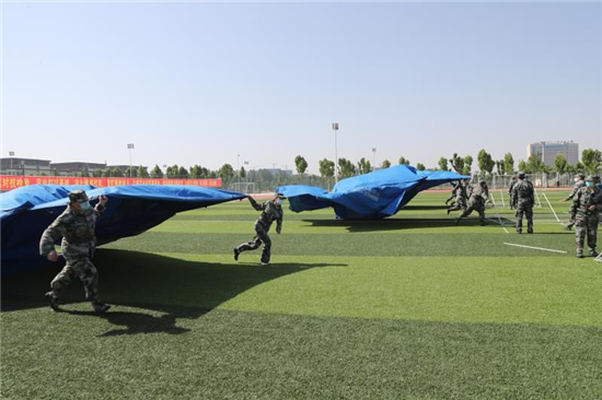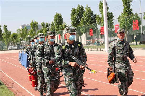 活動現(xiàn)場,八一軍旗、民兵隊旗迎風(fēng)飄揚。上午9時許,全體起立,現(xiàn)場奏響雄渾的《中國人民解放軍進行曲》。接著,政委郭立君宣讀了民兵干部任職命令,應(yīng)急班長帶領(lǐng)全體民兵進行了宣誓,新入隊民兵進行了表態(tài)發(fā)言。應(yīng)急指揮所開設(shè)、隊列表演、警棍盾牌操匯報、快速控火救人、戰(zhàn)場急救……一個個精彩的匯報,贏得現(xiàn)場掌聲陣陣。