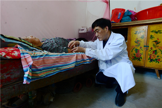 李樓鄉(xiāng)位張行政村72歲的貧困戶張振廷腦中風多年,在大醫(yī)院治療一個月后,留有偏癱后遺癥臥床不起;李莊行政村80歲的貧困戶李體榮也是此癥,因無錢治療,二人均回家“等死”。柴萬靈作為簽約家庭醫(yī)生,就在他們家中設(shè)立家庭病床,每周一、三、五到老張家,二、四、六到老李家,給他們采用中醫(yī)針灸、按摩,并為其煎服偏癱復(fù)原湯,兩位老人都是半年左右能拄拐下地。