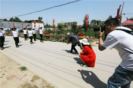采風期間,10多名專業(yè)攝影師奔赴奉母鎮(zhèn)前邵村、前于王村以及孝賢碑林等地,進行實地探訪采風。前邵村是當?shù)赜忻膫鹘y(tǒng)村落,村里文化氛圍濃厚,先后走出10多位戲曲方面的國家一級演員。在該村,一支業(yè)余的文藝宣傳隊引起攝影家們關注的目光。大家即興表演了兩三個節(jié)目,引得攝影家們極大興趣,不停按下快門拍攝。
