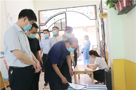 當天上午,縣政府辦副主任楊培爭、教體局局長劉現(xiàn)營、洺南黨工委書記張杰、疾控中心主任張吉志、公安局副政委朱衛(wèi)兵、教體局副局長劉廣鋒及衛(wèi)健委、食藥局相關負責人先后深入實驗幼兒園、小天鵝幼兒園、弘月幼兒園、第二實驗幼兒園等城區(qū)幼兒園,調(diào)研指導返園復學工作。