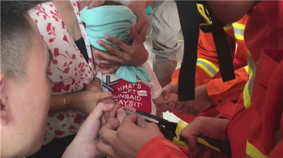 鄲城:幼童鋼管“咬手” 鄲城消防來幫忙