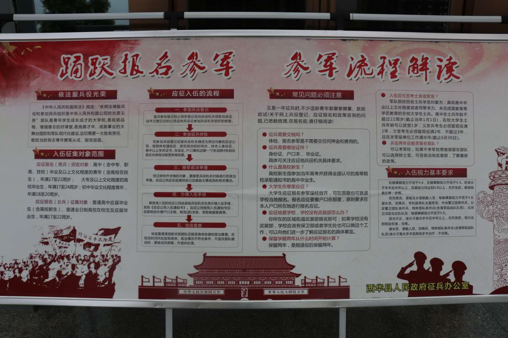 為做好大學生征兵工作,西華縣人武部認真開展了多層次、全方位的宣傳發(fā)動??h人武部多次召開黨委會,分析大學生征兵形勢,研究制定層層宣傳發(fā)動方案。扎實開展大學生兵員潛力調(diào)查工作,挖掘大學生兵員潛力,及時登記造冊。全縣成立了60支由縣人武部干部職工、鄉(xiāng)鎮(zhèn)專武干部、村民兵干部參加的大學生征兵宣傳小分隊,分頭對轄區(qū)內(nèi)在家的各級各類院校畢業(yè)生和在校生,進行挨家挨戶、面對面的宣傳,把《2020年西華縣大學生征兵宣傳冊》發(fā)放到每一名大學生手中,做到一人不漏。為其算好“經(jīng)濟帳”、“ 政治帳”、“ 前途帳”。把針對大學生青年制定的最新調(diào)整的優(yōu)惠政策宣傳到位,最大限度發(fā)掘大學生征集潛力。同時,該縣把做深做細大學生征兵宣傳報名工作,作為完成征兵任務(wù)的重要基礎(chǔ),積極轉(zhuǎn)變思路,創(chuàng)新工作方法,靈活運用各種宣傳手段,千方百計增強宣傳發(fā)動的針對性、實效性。該部除采取散發(fā)傳單、懸掛橫幅、制作板報、張貼標語、現(xiàn)場咨詢等傳統(tǒng)方式外,還充分利用廣播、電視、微信、短信、電子屏等傳媒手段增強宣傳效果,做到廣播電視里有音有像,微信短信電子屏有征兵信息滾動發(fā)布,墻報上有文,橫幅標語上有宣傳口號,提高全民政治意識和國防觀念,切實讓大學生入伍優(yōu)惠政策宣傳不留死角。該部充分利用對現(xiàn)役軍人家庭逐戶走訪解難、贈送懸掛“光榮軍屬”牌匾、敲鑼打鼓送喜報等活動,在全社會大力營造“一人參軍、全家光榮”的鮮明導向,讓尊崇軍人的號召在西華縣落地,讓當兵光榮的傳統(tǒng)在群眾心中扎根,從而激勵大學生青年積極報名參軍的報國熱情。