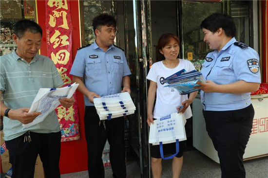 贈送手提袋只是該局眾多宣傳手段的一種?;顒娱_展以來,554個警務(wù)工作站的駐村民警、輔警已經(jīng)基本完成了所有家庭的入戶走訪,發(fā)放了反詐傳單50余萬份,1671個“警民一家親”微信群每天推送反詐騙現(xiàn)實案例、常識,顯示反電詐內(nèi)容的電子屏和標語橫幅隨處可見,鄉(xiāng)村大喇叭的霸氣喊話不絕于耳……