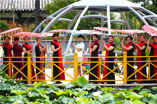 周口森林公園經(jīng)過近年的建設(shè)已經(jīng)成為市區(qū)休閑的一處好去處,風(fēng)景優(yōu)美,園林幽深,目前,盡管森林公園附近道路施工,進出還不方便,但是仍吸引著很多居民前去休閑游玩,愛美的大媽們更是在這里秀一把,7月16日上午,來自市區(qū)模特隊的大媽們,穿著靚麗的旗袍,在荷葉飄香、假山園林秀林深處,開心地進行一場模特秀。