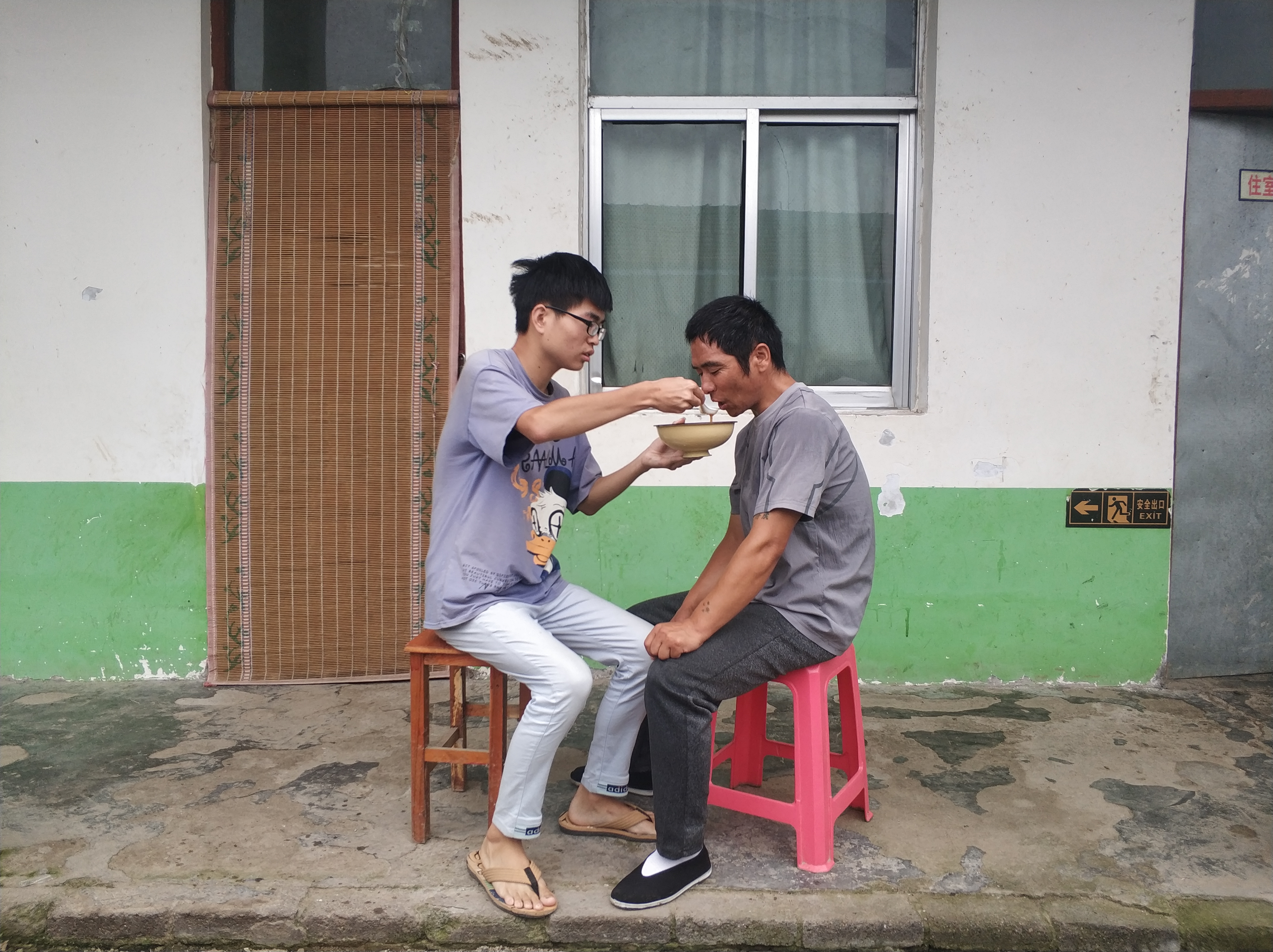 “2018年2月17日晚上,我爸突然在外暈倒,被好心鄰居送回了家,我因?yàn)槟暧谉o知,不知是發(fā)病,沒有及時(shí)送醫(yī)院救治,耽誤了病情,導(dǎo)致腦部嚴(yán)重出血、水腫?!鄙廴f成回憶起往事,眼中噙滿了淚水。 當(dāng)時(shí),邵萬成正在讀初二,不得已休學(xué),在家照顧父親。邵增做完手術(shù)后,從吃、喝、拉、撒,到穿衣、擦拭身體、肢體康復(fù)訓(xùn)練等,事無巨細(xì),邵萬成都用心地護(hù)理。日子一天天過去了,家中的積蓄逐漸耗盡,邵萬成覺得天都要塌了!