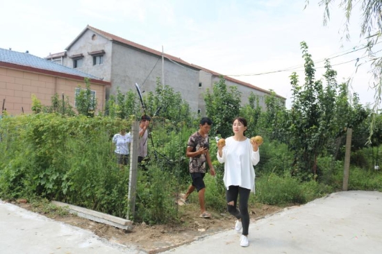 上任伊始,許天勇充分利用水域面積大的優(yōu)勢,發(fā)展鄉(xiāng)村旅游經(jīng)濟,把整理出來的水域種上了荷花,放上了魚苗,在村里還建起了四橦民宿建筑,在廣場邊村里統(tǒng)一管理的一處民宿內(nèi)興辦了特色餐飲,讓來這里垂釣的人有得玩、有得吃、還有得住。許天勇指著許莊村頭的一處坑塘說:“這是我們治理出來比較大的一處,鎮(zhèn)里牽頭在坑塘兩側(cè)建起了扶貧富民冷庫,還建成1200多平方米的游園、近3000平方米的垂釣園,另外,村里又把平整出14.2畝土地種上的梨樹,承包給村民進行果蔬間作,現(xiàn)在梨樹已進入盛果期,預(yù)計今年凈收益4萬元左右。”