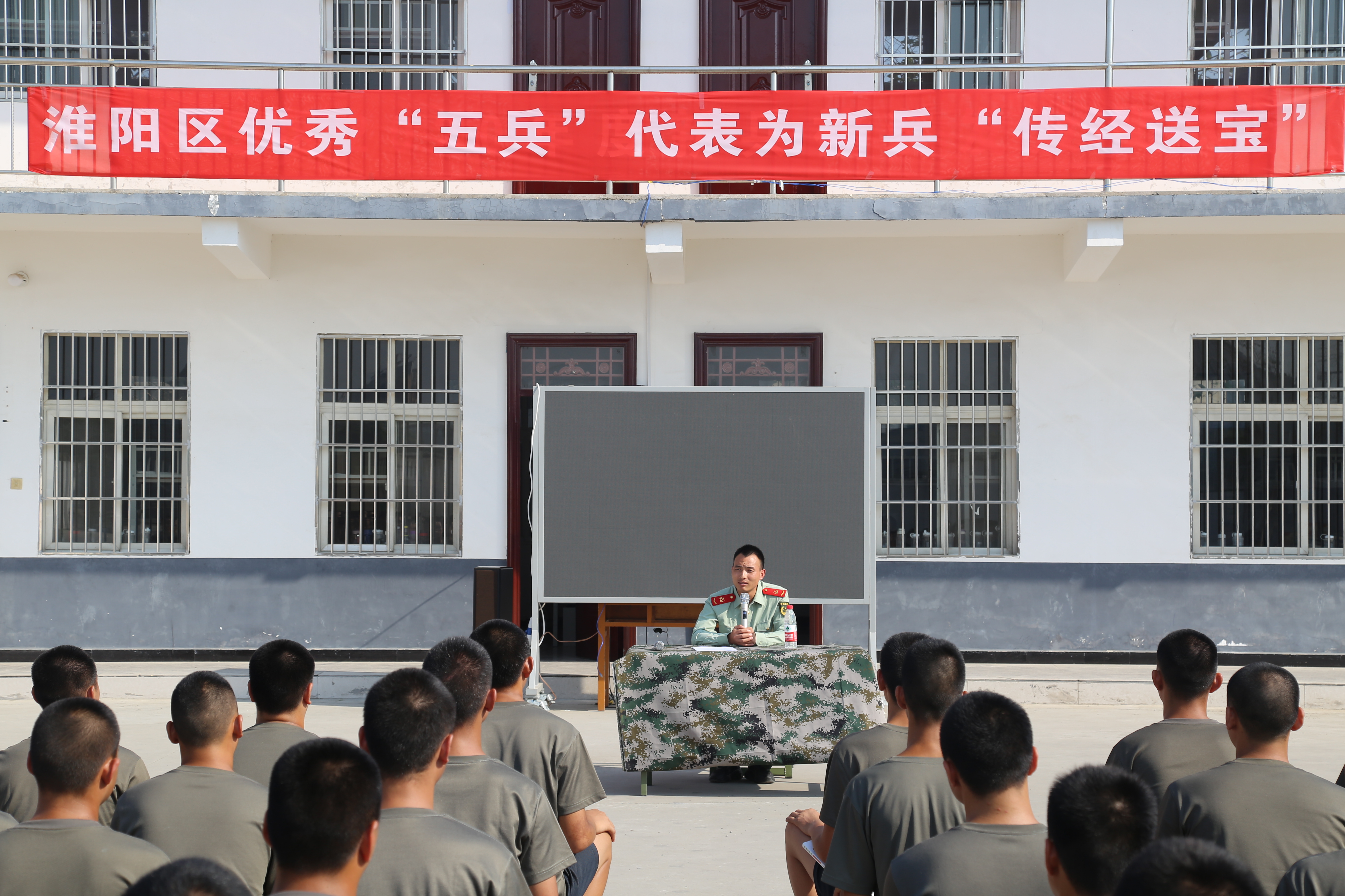 為了進(jìn)一步激發(fā)新兵的工作訓(xùn)練熱情,堅(jiān)定新戰(zhàn)士立足軍營(yíng),獻(xiàn)身國(guó)防的信念。9月8日,在年度新兵即將起運(yùn)之際,淮陽(yáng)區(qū)人武部組織優(yōu)秀“五兵”代表(參戰(zhàn)老兵、現(xiàn)役士兵、退役士兵)為新兵“傳經(jīng)送寶”活動(dòng),300余名新兵一起聆聽優(yōu)秀“五兵”代表精彩講課。