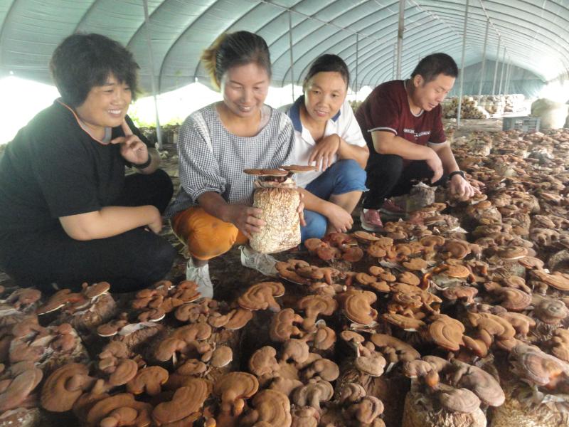 9月15日,商水縣黃寨鎮(zhèn)楊營(yíng)村“蘑菇王”楊秀麗(左二),在扶貧產(chǎn)業(yè)園向種植戶(hù)傳授靈芝管理技術(shù)。近年來(lái),黃寨鎮(zhèn)采用“合作社+基地+貧困戶(hù)”的模式,集種植、加工、銷(xiāo)售為一體,加快推進(jìn)食用菌全產(chǎn)業(yè)鏈開(kāi)發(fā),帶動(dòng)300多人實(shí)現(xiàn)脫貧致富。 喬連軍 攝