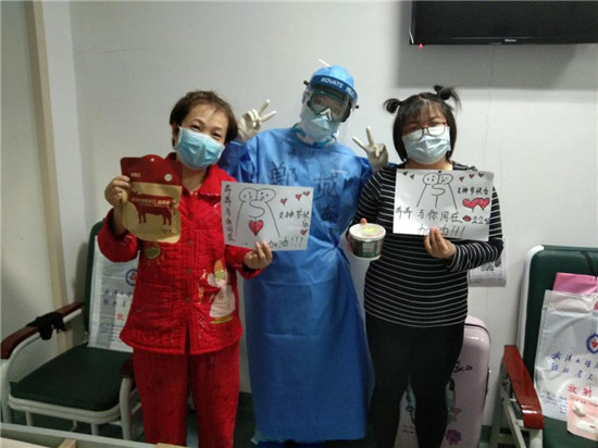 今年74歲的李秀紅,不僅感染新冠肺炎,而且罹患老年癡呆,生活需要時時照顧,而且剛?cè)朐簳r,對陌生環(huán)境的恐懼造成她心情壓抑,天天不說話,時不時落淚。為了讓老人放下心理包袱,胡奔奔在進行哄喂吃飯、服藥等正常護理之余,經(jīng)常陪老人聊天、唱歌,后來老人情緒明顯好轉(zhuǎn),還主動與胡奔奔一起扭起了舞蹈。后來,老人康復出院時,雖然無言 卻一直緊緊抓著胡奔奔的手久久不愿放開。胡奔奔說,那一刻,她落淚了,但心里確實說不出的高興。