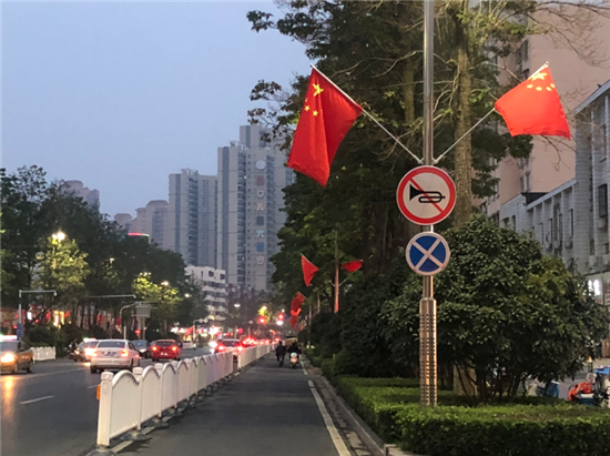 喜迎國慶節(jié) 市區(qū)大街小巷國旗飄揚