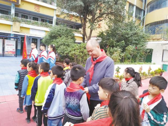 10月13日,是中國少年先鋒隊(duì)誕辰日,又稱少先隊(duì)建隊(duì)紀(jì)念日。周口市文昌小學(xué)堅(jiān)持以立德樹人,把課堂教學(xué)與主題活動(dòng)相結(jié)合,開展了多種多樣的“國旗下成長”主題教育活動(dòng)。圖為在10月12日的升旗儀式上,六(4)中隊(duì)少先隊(duì)員向全校學(xué)生普及紅領(lǐng)巾知識(shí)。記者 王珂 通訊員 魏云紅 攝