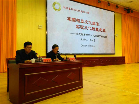 為弘揚(yáng)優(yōu)秀傳統(tǒng)文化,全面提升政協(xié)委員的政治業(yè)務(wù)素質(zhì)和文化理論素養(yǎng),著力破解太康文化發(fā)展的認(rèn)識(shí)和機(jī)制難題,10月18日上午,太康縣政協(xié)組織舉辦“牢固樹立文化自信 實(shí)現(xiàn)文化跨越發(fā)展”專題講座。王建林、閆家明、張新棟、于闐鎮(zhèn)、鄧昌鋒等縣領(lǐng)導(dǎo),縣直單位和鄉(xiāng)鎮(zhèn)領(lǐng)導(dǎo)班子成員,縣政協(xié)全體委員,省、市駐太政協(xié)委員,政協(xié)機(jī)關(guān)全體工作人員,太康縣第一高級(jí)中學(xué)的師生代表聆聽講座。