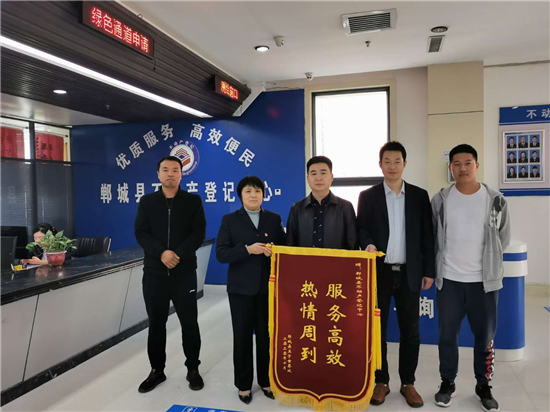 鄲城縣不動(dòng)產(chǎn)登記中心:服務(wù)高效 企業(yè)致謝贈(zèng)錦旗