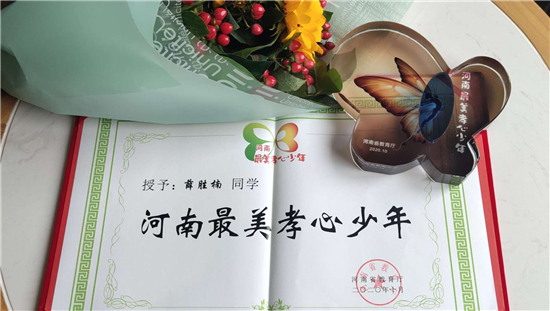 鄲城薛勝楠被評(píng)為“河南最美孝心少年”