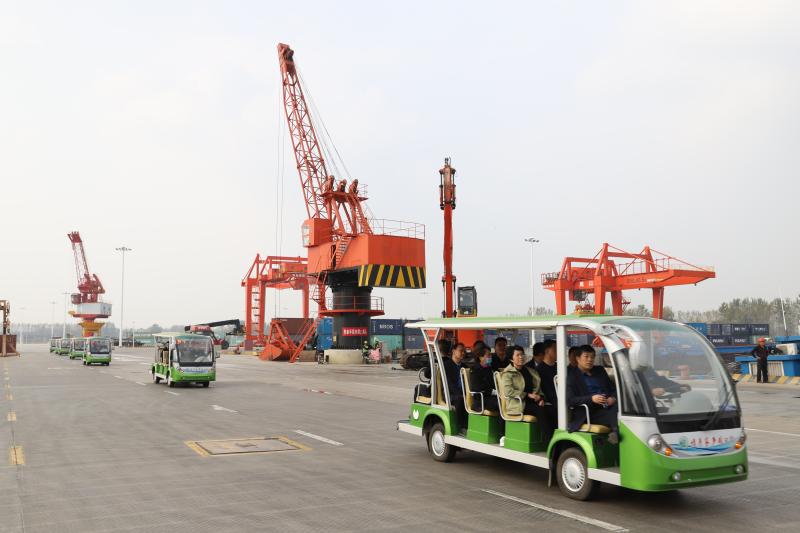 在中心港碼頭,工作人員向來賓詳細介紹了周口的航運總體情況,以及在周口大力發(fā)展臨港經(jīng)濟的大背景下,周口港區(qū)臨港產(chǎn)業(yè)規(guī)劃布局和發(fā)展現(xiàn)狀。隨后,來賓乘坐觀光車,到港池前沿近距離了解碼頭運營情況,親身感受碼頭繁忙的作業(yè)現(xiàn)場同時,來賓們向工作人員了解碼頭貨源、運量、運輸費用等問題,工作人員詳細解答。大家紛紛贊嘆:“想不到中原腹地擁有如此優(yōu)越的水運條件,還建設(shè)了規(guī)模宏大的內(nèi)河港口,周口臨港經(jīng)濟發(fā)展氣勢如虹,前景一片光明!”②9