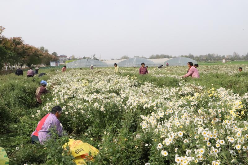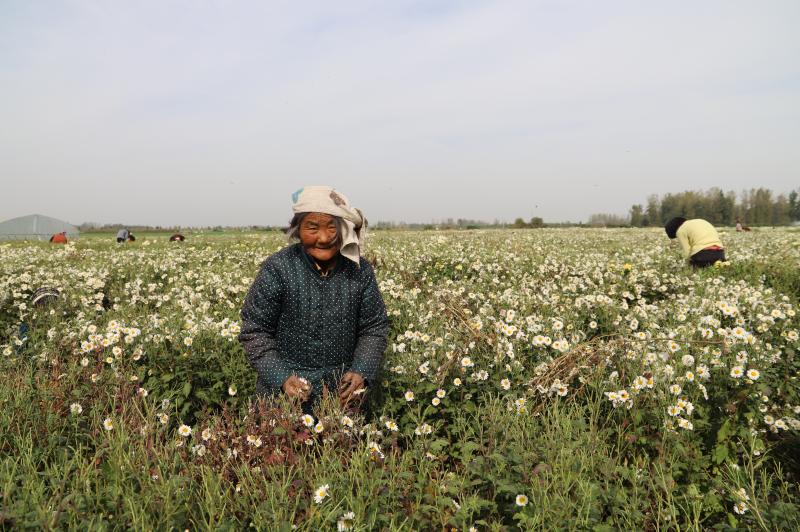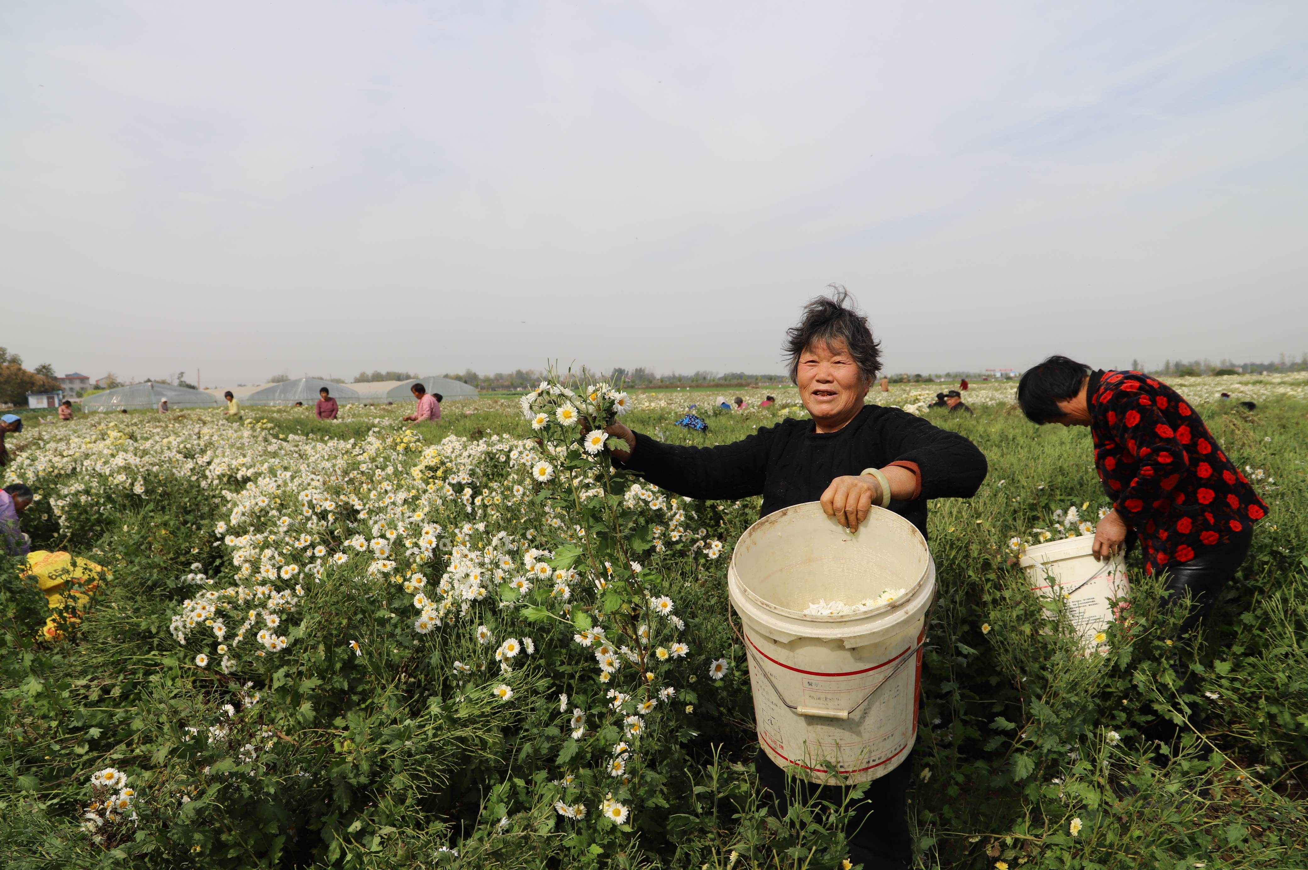 原來,菊花田的老板叫晉振中,于2018年從全縣脫貧攻堅種植信息渠道得知種菊花能致富,銷售的末端是安徽亳州的藥材市場和一些花茶商家。特別是種植方式和平原種植紅薯一樣,把田地打成壟,栽苗、施肥、澆水、除草,9月份采摘一次、11月份采摘一次,剩下的菊花秸稈粉碎到田間作為肥料,還能種植晚小麥,十分方便。于是,他通過鎮(zhèn)村兩級黨員干部協(xié)助流轉(zhuǎn)了100畝土地,2019年就掙了20多萬元。由于晉菜園村是貧困村,在他的菊花田務工的勞動力大多是貧困戶,能帶動近百戶貧困戶脫貧致富,晉振中欣慰地覺得自己為脫貧攻堅做了一份大貢獻。