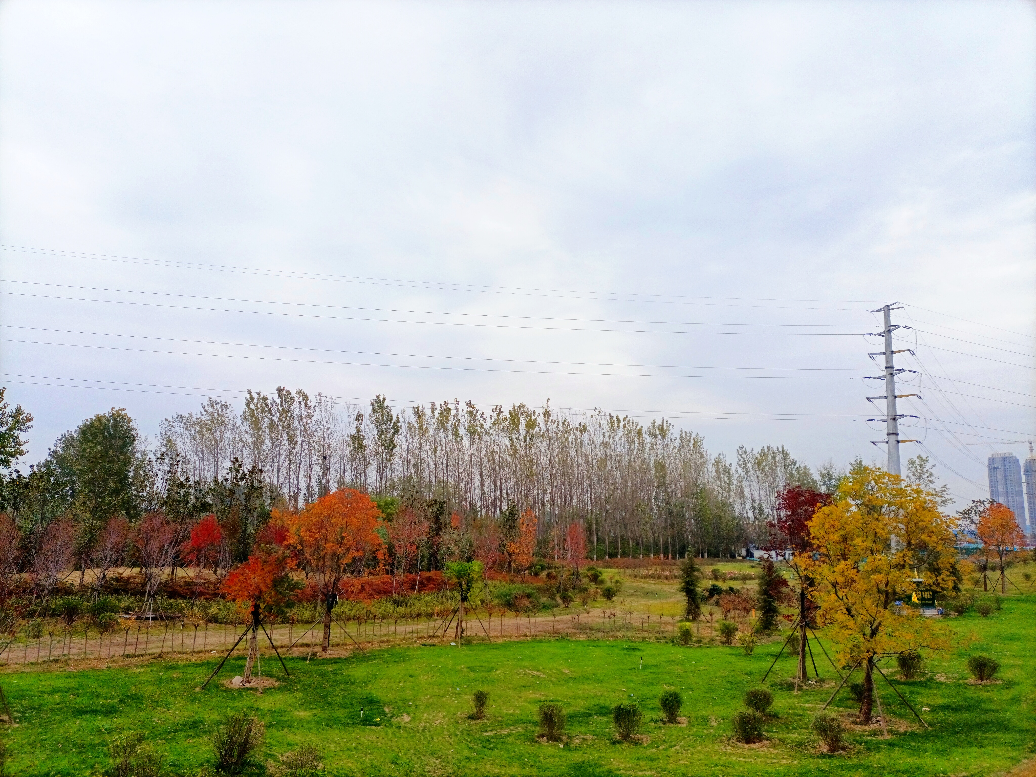 深秋時(shí)節(jié)天漸涼,滿目綠色稍染黃。沙潁河畔秋光美,游人垂釣劃舟忙。