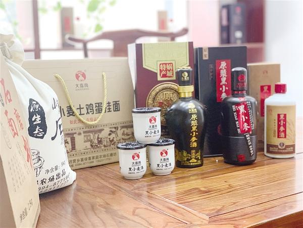喜俊喜家庭農(nóng)場生產(chǎn)的黑小麥酒、大喜崗?fù)岭u蛋、大喜崗黑小麥面粉等系列明星產(chǎn)品。