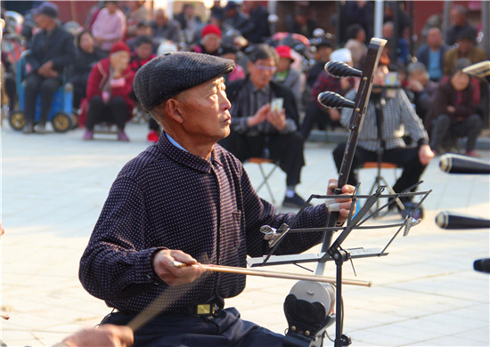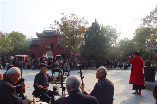 11月10日,戲迷朋友在商水縣郝崗鎮(zhèn)北社村千年古塔旁表演戲曲節(jié)目。初冬時(shí)節(jié),暖陽普照,壽圣寺古塔附近的戲迷和樂器愛好者自發(fā)來到千年古塔旁表演戲曲節(jié)目,為當(dāng)?shù)厝罕娝蜕暇实奈幕蟛?,進(jìn)一步活躍了農(nóng)村文化生活。①15周口日報(bào)·周道客戶端記者付永奇 通訊員 呂耀光 攝