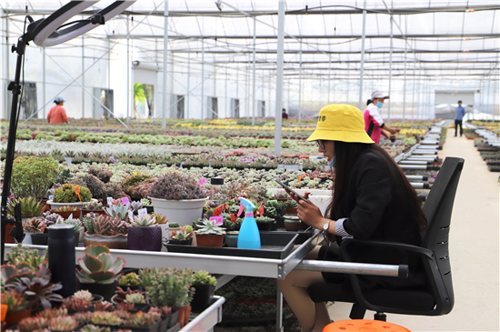 “雙11”剛過,河南“多肉之王”、省電商扶貧帶頭人張國健正帶領(lǐng)著團(tuán)隊(duì)在鄲城縣農(nóng)高區(qū)多肉基地為2300多單精準(zhǔn)發(fā)貨。今年38歲的張國健開過挖掘機(jī)、當(dāng)過銷售員,2014年在南方涉足電商時(shí)摔了大跟頭,賠了70多萬元?;氐嚼霞野遵R鎮(zhèn)辦了多肉種植基地之后,鄲城縣商務(wù)局等部門與其對(duì)接培訓(xùn)了網(wǎng)紅、推薦了人才、在農(nóng)高區(qū)設(shè)立2650平方米的大棚,張國健邁上了快車道,年銷售額在3000萬元以上。今年又增加9個(gè)大棚,包括錢店鎮(zhèn)、石槽鎮(zhèn)兩個(gè)供貨代養(yǎng)的扶貧大棚,幫扶30多戶貧困戶脫貧,帶動(dòng)電商從業(yè)人員160余人。