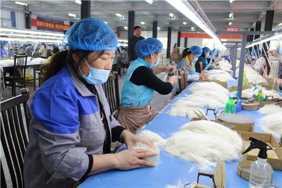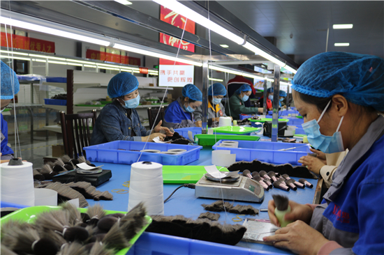 “從簡(jiǎn)單的梳羊毛到如今做高檔化妝刷,從產(chǎn)業(yè)鏈的末端做到頂端,從養(yǎng)家糊口到賺外匯,經(jīng)過(guò)多年的滾動(dòng)發(fā)展,鹿邑縣硬是把尾毛化妝刷這種‘小手藝’做成了助推縣域經(jīng)濟(jì)高質(zhì)量發(fā)展的‘大產(chǎn)業(yè)’。目前,全縣大大小小的化妝刷企業(yè)達(dá)1000多家,尾毛出口總量占全國(guó)化妝刷原毛出口的80%,年產(chǎn)羊毛3000多噸、尼龍毛9000多噸,生產(chǎn)各類(lèi)化妝刷1.5億套,產(chǎn)品遠(yuǎn)銷(xiāo)20多個(gè)國(guó)家和地區(qū)。另外,作為尾毛的衍生產(chǎn)業(yè),羊毛衫加工產(chǎn)業(yè)近幾年的異軍突起,更是激活了全縣創(chuàng)業(yè)就業(yè)的一池春水。統(tǒng)計(jì)數(shù)字顯示,近幾年,鹿邑縣持續(xù)圍繞尾毛化妝刷特色產(chǎn)業(yè),強(qiáng)鏈延鏈補(bǔ)鏈,開(kāi)展精準(zhǔn)招商,化妝刷及配套企業(yè)已發(fā)展到135家,實(shí)現(xiàn)產(chǎn)值50多億元,出口創(chuàng)匯21億;羊毛衫紡織企業(yè)發(fā)展到54家,有電腦織機(jī)6500臺(tái),年產(chǎn)各類(lèi)針織服裝6000萬(wàn)件,使鹿邑成為河南省最大的化妝刷生產(chǎn)基地、羊毛衫加工基地,帶動(dòng)全縣7.5萬(wàn)人創(chuàng)業(yè)就業(yè)。