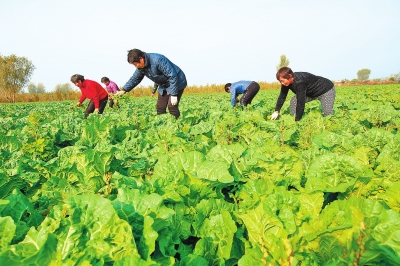 ??h小河鎮(zhèn)張劉莊村村民喜收白菜本報記者郭戈攝