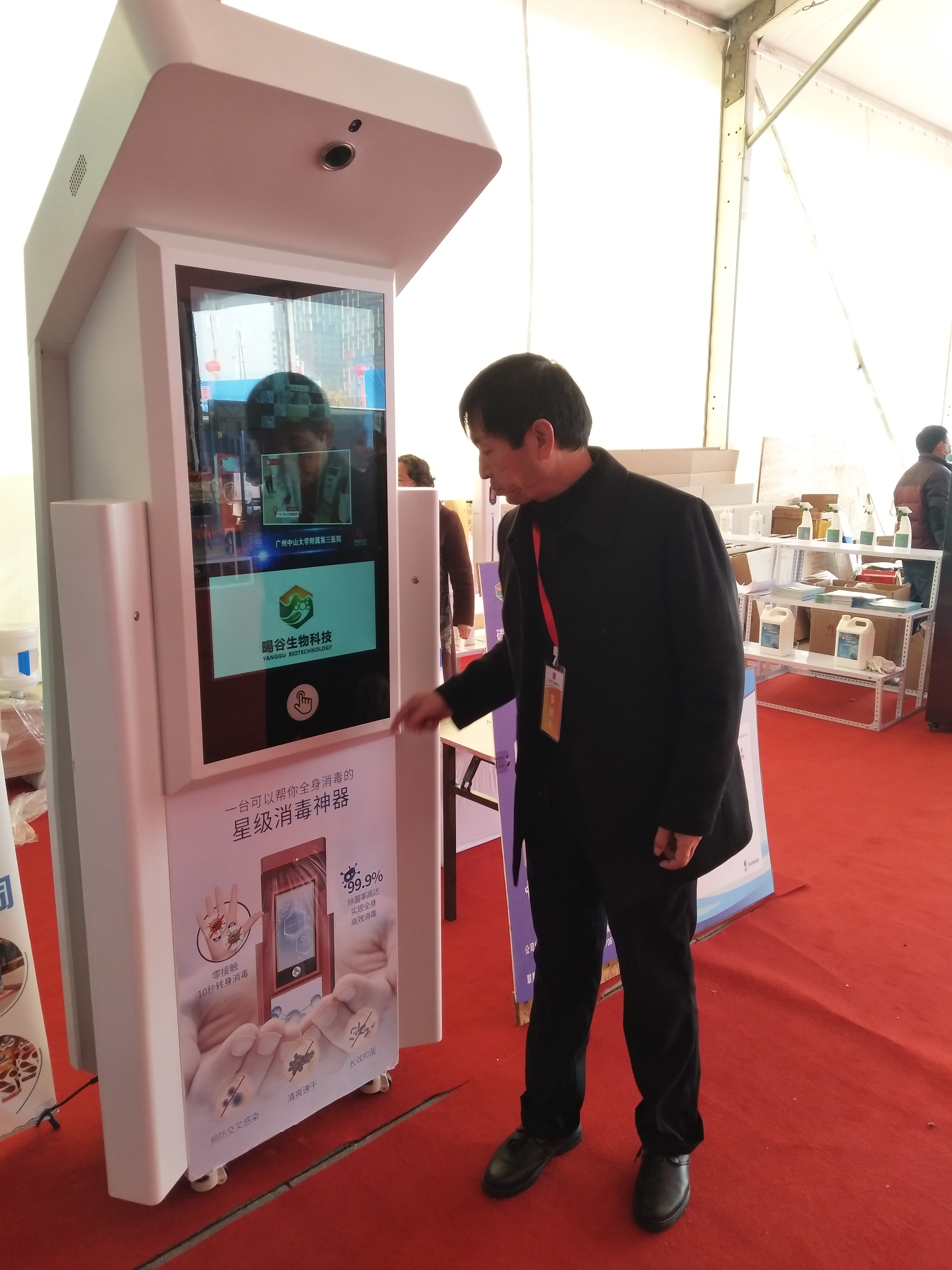 手掌往感控區(qū)上輕輕一罩,液晶屏四角就噴出霧化消毒液,大概持續(xù)10秒,足夠人轉(zhuǎn)一圈做周身消毒——在周商產(chǎn)品展示展覽大廳的西南角,北京陽(yáng)谷生物科技有限公司市場(chǎng)部總監(jiān) 、項(xiàng)城人張清峰在介紹“人體感應(yīng)消毒機(jī)”,引得市民紛紛圍觀體驗(yàn)。由于消毒液沒(méi)有異味,部分市民質(zhì)疑是清水,對(duì)此張清峰說(shuō):“我們用的是‘竹芳牌’碳酸型微酸性次氯酸消毒液,我們的消毒機(jī)主要是面向校園推廣的,給孩子用的東西除了要有效,還得保證安全溫和,碳酸型的消毒液就沒(méi)有這么大的刺激性?!睋?jù)張清峰介紹,“人體感應(yīng)消毒機(jī)”是今年五月下旬生產(chǎn)的新品,目前處在推廣階段,“當(dāng)?shù)弥芸谝k第一屆周商大會(huì)的消息,我第一時(shí)間想到要把消毒機(jī)展示給家鄉(xiāng)父老。我是個(gè)在北京打拼十多年的項(xiàng)城人,目前河南分公司由我負(fù)責(zé),項(xiàng)城市政府給了我很多支持?!?/p>