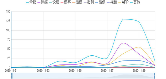 11月21日0:00至11月30日11::00,周口報業(yè)傳媒集團(tuán)大數(shù)據(jù)中心監(jiān)測到的數(shù)據(jù)顯示,