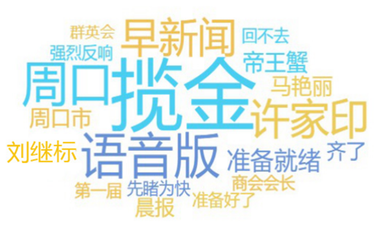 網(wǎng)絡(luò)熱詞反映了網(wǎng)民關(guān)注的重點,詞云圖中大大的“攬金”二字占據(jù)詞云圖中央,可見攬金是真的攬金,據(jù)悉,首屆周商大會簽約項目31個,總投資達(dá)429.7億元人民幣?!霸S家印”“馬艷麗”在整個圖中也是光彩奪目,作為周口人,走上北上廣深的成功人士還心心念念家鄉(xiāng)的發(fā)展,讓老鄉(xiāng)們倍感溫暖,家鄉(xiāng)人關(guān)注他們?yōu)榧亦l(xiāng)發(fā)展做出的努力和他們的動態(tài)也是再正常不過了。