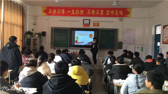 扶溝縣高中二(6)班學生楊毅說:“通過學校開展的學憲法活動,了解了很多和生活息息相關的法律知識,增強了法治觀念,我要做尊法、守法、護法的好少年。”