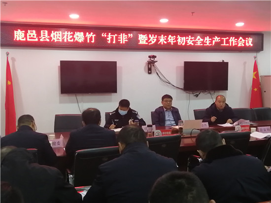 12月10日上午,在國家和省安全生產(chǎn)工作視頻會議結束后,鹿邑縣委常委、常務副縣長陸志杰,副縣長、縣公安局長任金瑞立即組織召開專題會議,對全縣煙花爆竹“打非”和歲末年初安全生產(chǎn)重點工作進行安排部署。