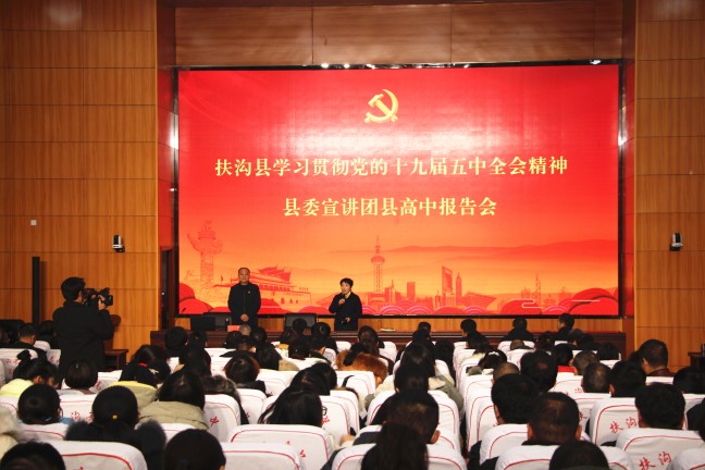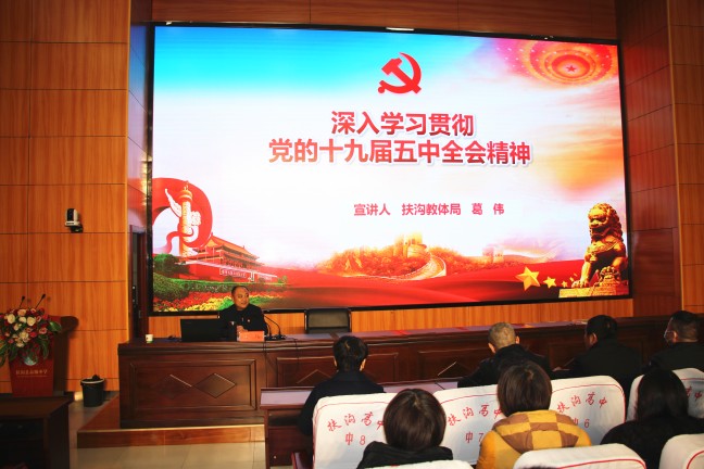 12月12日下午,扶溝縣高中德馨樓七樓會議室掌聲陣陣、座無虛席,扶溝縣學(xué)習(xí)貫徹黨的十九屆五中全會精神縣委宣講團縣高中報告會正在這里舉行,宣講會特邀縣教體局黨組書記葛偉進(jìn)行宣講,局機關(guān)班子成員,縣高中班子成員和400余名教師參加了宣講會。