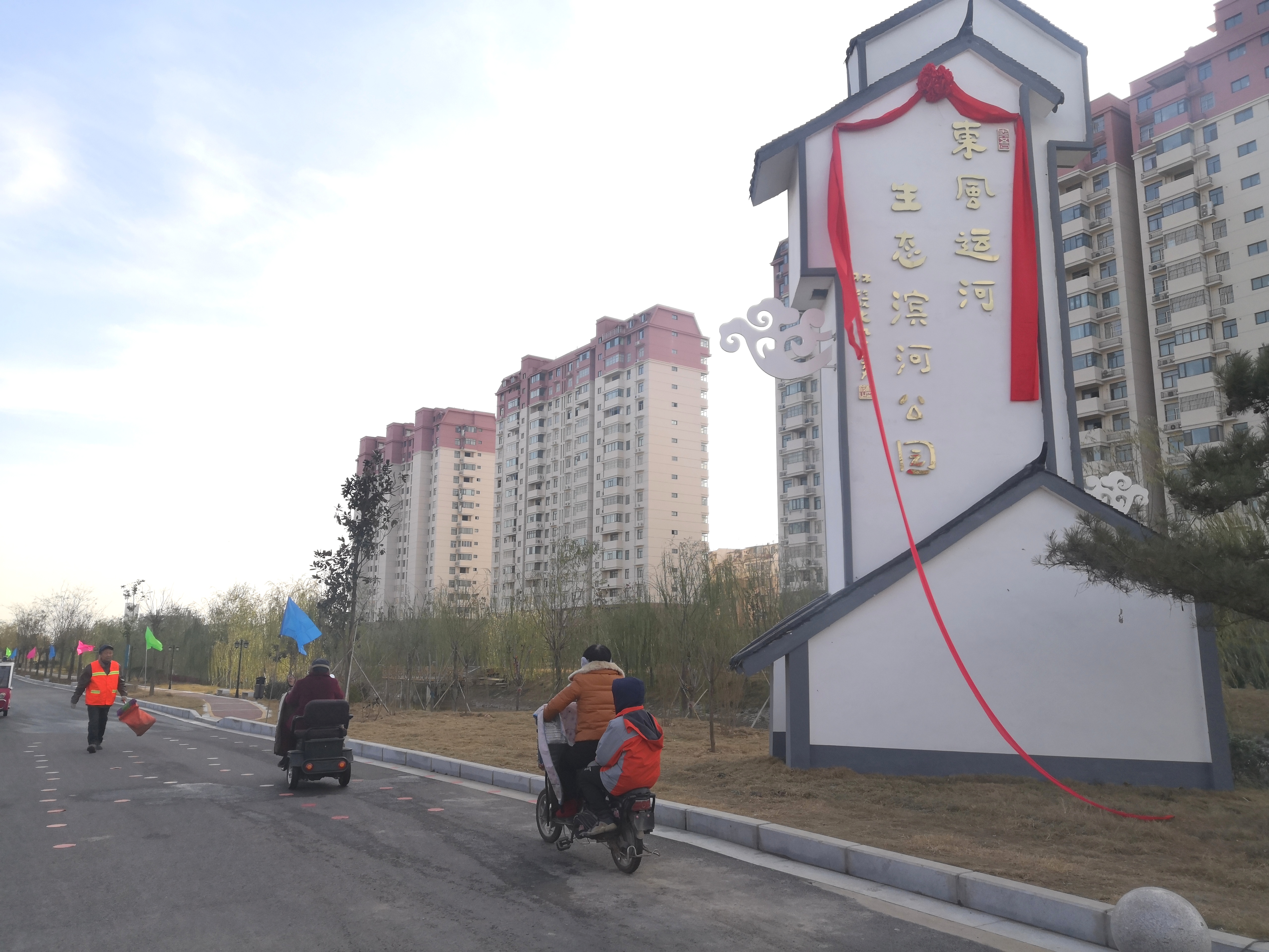 東風(fēng)運河生態(tài)濱河公園為周邊居民提供一個集體育運動、休閑娛樂為一體的綜合性濱河公園,極大的提升周邊居民生活幸福感。運河的兩岸居民為家門口新增一處公園而感到興奮,他們紛紛冒著寒風(fēng)趕來參觀,在這里拍照留念,這里成了西華市民的又一處網(wǎng)紅打卡地。