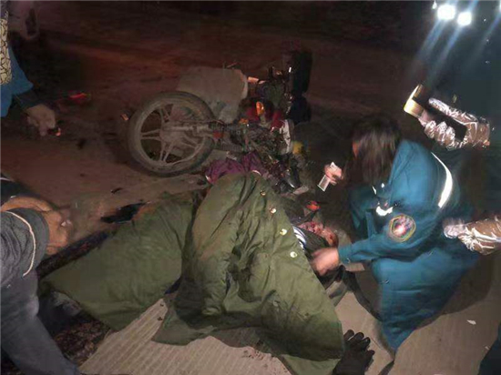 12月11日5時(shí)24分許,在商水縣城巴路、湯莊鄉(xiāng)大趙村扶貧服務(wù)點(diǎn)門口處,商水縣舒莊鄉(xiāng)吳莊村11組韓同首駕駛豫P1Z851號小型普通客車由西向東行駛時(shí)與相對方向行駛的舒莊鄉(xiāng)北王張村9組張義來駕駛的無牌兩輪摩托車發(fā)生交通事故,造成車輛損壞,張義來及無牌兩輪摩托車乘車人張金在受傷。商水縣交警大隊(duì)與周口人和醫(yī)院立即啟動(dòng)“警醫(yī)結(jié)合”救治機(jī)制,開通綠色入院通道,采取零繳費(fèi)先救治措施,對傷者迅速進(jìn)行救治,傷者暫時(shí)還在救治中。此事故的傷員救治過程,充分展現(xiàn)了“警醫(yī)合作”機(jī)制的優(yōu)越性和可行性,傷者家屬對公安機(jī)關(guān)和醫(yī)院十分感謝。①15