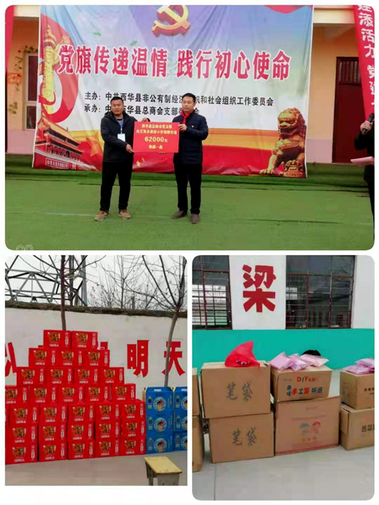 12月22日,西華縣“兩新”組織黨工委聯(lián)合縣總商會(huì)黨支部,在艾崗鄉(xiāng)潘南小學(xué)開(kāi)展“黨旗傳遞溫情、踐行初心使命”愛(ài)心捐助活動(dòng),潘南小學(xué)全體師生及愛(ài)心企業(yè)家共計(jì)200余人參加活動(dòng)。