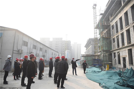 當(dāng)日上午,受院長于健委托,院領(lǐng)導(dǎo)張廣海、葉達(dá)林、王文鋒、王成坤帶領(lǐng)醫(yī)政、護(hù)理、控感等相關(guān)職能科室負(fù)責(zé)人,一行20余人到建設(shè)工地現(xiàn)場(chǎng)察看。施工方技術(shù)人員詳細(xì)介紹了門診樓、病房樓等各樓層的功能定位、科室布局、水暖線路等,雙方就一些細(xì)節(jié)問題進(jìn)行深入交流。