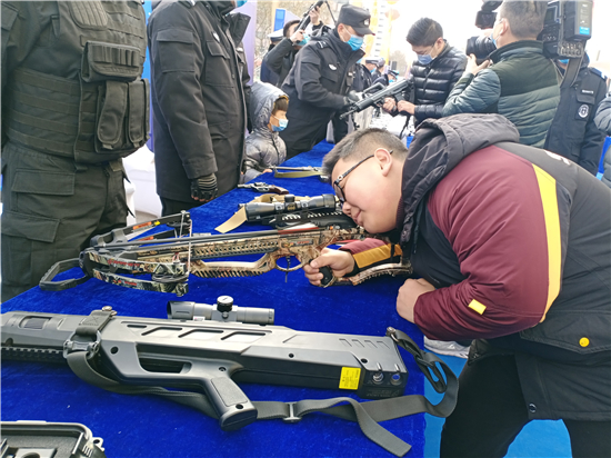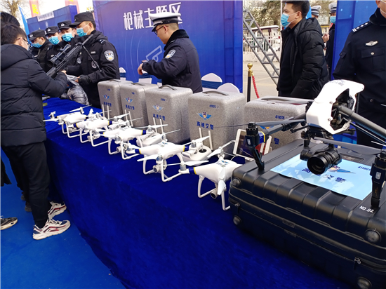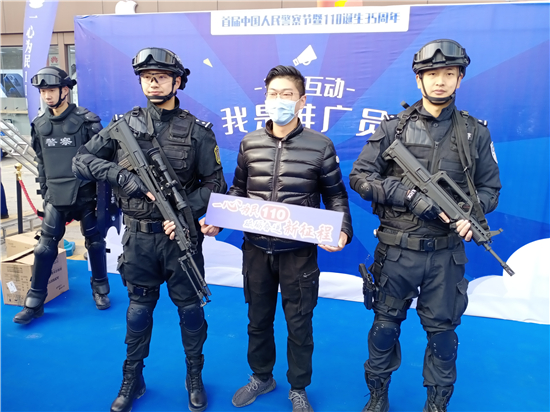 活動(dòng)現(xiàn)場(chǎng)設(shè)置了“反假幣主題區(qū)”“消防主題區(qū)”“防電詐主題區(qū)”“禁毒主題區(qū)”“互動(dòng)區(qū)”等形式多樣的功能展示區(qū),現(xiàn)場(chǎng)接受群眾咨詢,與市民深度互動(dòng),讓市民近距離體驗(yàn)、全面感受人民警察的日常工作。除此之外,民警還進(jìn)行了槍械展示、無人機(jī)展示等內(nèi)容。