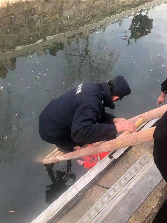 1月10日12時(shí)左右,鹿邑縣公安局特巡警大隊(duì)東關(guān)警亭值班人員,接到指揮中心指令稱:苑家園北側(cè)護(hù)城河里有一名女子落水。接到報(bào)警后,帶班隊(duì)長(zhǎng)武偉迅速帶領(lǐng)特警隊(duì)員姚留地、張景濤、倪亞彬等人趕到現(xiàn)場(chǎng)。