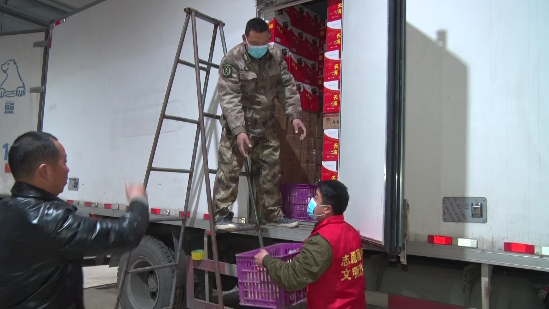 王國輝說:“咱們對接的就是河北南宮市,但是南宮市的工作人員考慮到咱們的安全,也不讓咱們進(jìn)入南宮的地域,而是去衡水,衡水是低風(fēng)險,現(xiàn)在不在風(fēng)險區(qū),這是對方為我們著想。我們把貨到了衡水的外圍一個指定的開闊地方,我們把貨卸下來,我們撤離,然后南宮的同志再過來,轉(zhuǎn)運(yùn)到他們車上去。”