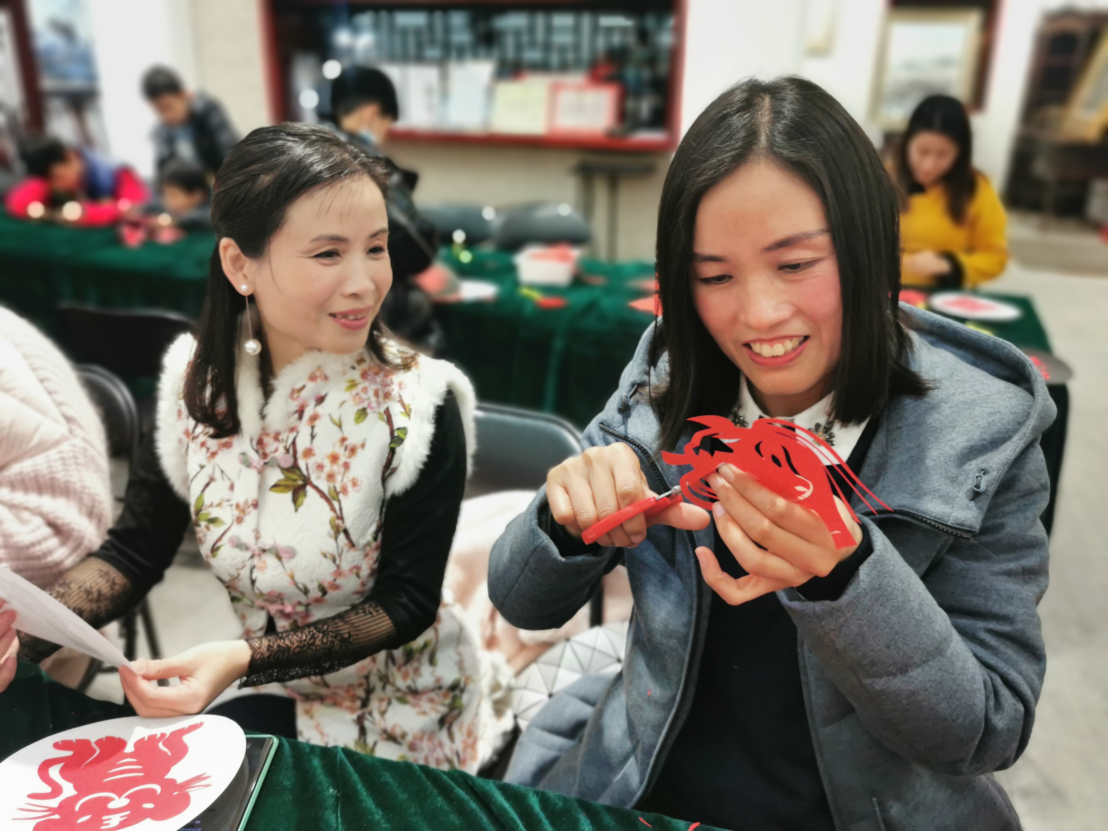 剪紙表現(xiàn)了中華民族淳厚雋永的民情與民風,是中國民間最為流行的一種藝術形式。為了讓大家學習、傳承這種極具傳統(tǒng)色彩的藝術,蕓雅讀書社組織了學習剪紙的活動?,F(xiàn)場,大家用剪刀在紅紙上剪出福、祿、壽、喜和各種圖案,極具喜慶吉祥的寓意,讓人們感受到了傳統(tǒng)新年的熱鬧。②8