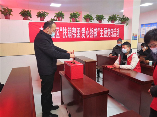 春節(jié)將至,歲寒情深。為確保困難群眾“過暖冬”“過好年”,1月29日上午,鄲城縣洺南辦事處李莊社區(qū)組織開展“扶弱幫困,愛心捐款”主題黨日活動(dòng)。“我們會(huì)盡自己最大的力量幫助他們解決實(shí)際困難,祝愿他們度過一個(gè)溫暖的春節(jié)?!鄙鐓^(qū)黨支部書記、主任王超勤表示。