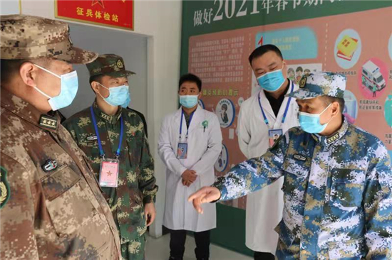 湯維政走進內(nèi)科、外科、五官科、心電圖、心理測試等檢查科室,實地查看體檢站基礎(chǔ)設(shè)施、體檢流程、人員配備、疫情防控、后勤保障等情況。他看到體檢場所按照流程合理、尊重隱私、閉環(huán)管理的要求,結(jié)合疫情防控的需求優(yōu)化診室設(shè)置,醫(yī)務(wù)人員嚴格把控體檢項目的各個關(guān)口,給予了肯定和贊揚。湯維政與現(xiàn)場候檢的應征青年親切交談,了解他們的年齡、學歷、家庭等情況,對適齡青年、大學畢業(yè)生踴躍參軍、報效祖國的行為表示贊賞,勉勵他們積極接受祖國挑選,投身軍營建功立業(yè)。