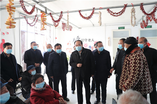 太康縣大許寨格花里行政村居村聯(lián)養(yǎng)點(diǎn)占地5畝,入住特困老人80余人,社會(huì)留守老人3人,老人們?cè)谶@里有吃有穿還有娛樂(lè)活動(dòng),生活得十分幸福。徐濟(jì)超一行走進(jìn)大許寨鎮(zhèn)葛花李居村聯(lián)養(yǎng)點(diǎn),向老人們祝賀新春。徐濟(jì)超指出,各級(jí)各部門(mén)要始終堅(jiān)持以人民為中心的發(fā)展思想,踐行初心使命,聚焦群眾冷暖,用足用好惠民政策,千方百計(jì)幫助群眾解決實(shí)際問(wèn)題,讓群眾老有所養(yǎng)、病有所醫(yī)、住有所居,讓大家共享改革發(fā)展成果,確保讓廣大群眾過(guò)個(gè)歡樂(lè)祥和的新春佳節(jié)。
