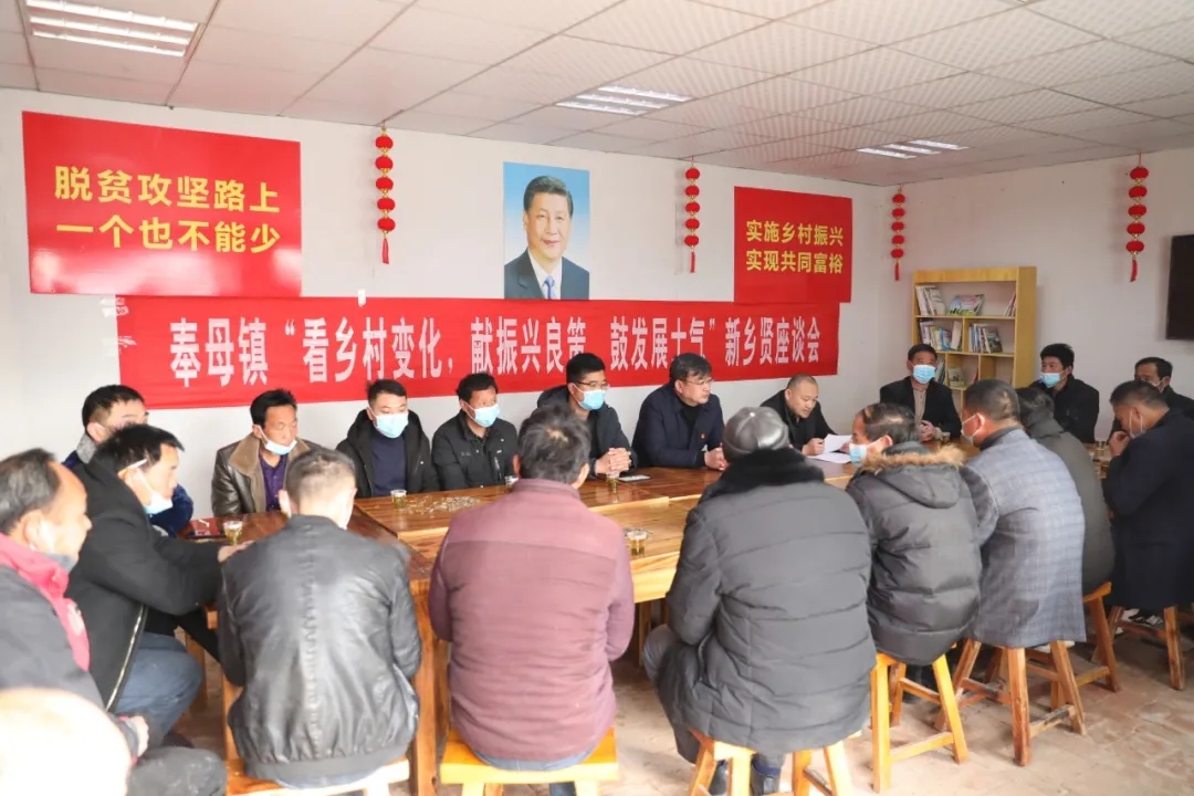 匯聚眾人之力才是發(fā)展之力,凝聚眾人智慧才是最高智慧。春節(jié)之際,奉母鎮(zhèn)黨委為進一步調動鄉(xiāng)賢的積極性和創(chuàng)造性,共同探討家鄉(xiāng)的發(fā)展與建設,最大限度贏得鄉(xiāng)賢對家鄉(xiāng)發(fā)展的支持和反哺,有效推動資金回流、項目回歸、信息回傳、人才回鄉(xiāng),集發(fā)展“錦囊妙計”,匯聚助推鄉(xiāng)村振興的新力量,特意把七二村的“看鄉(xiāng)村變化,獻振興良策,鼓發(fā)展士氣”新鄉(xiāng)賢座談會會場布置到“鄉(xiāng)村大食堂”。奉母鎮(zhèn)黨委書記陳鵬、武裝部長胡波濤參加座談會。陳鵬作了講話。
