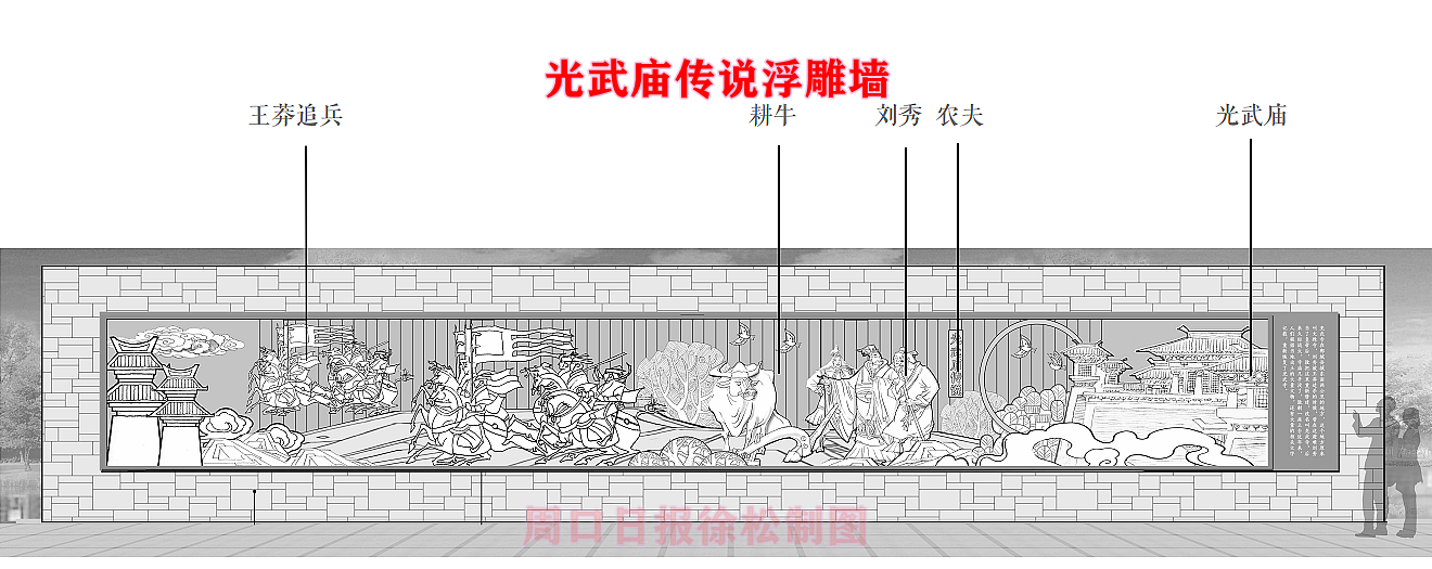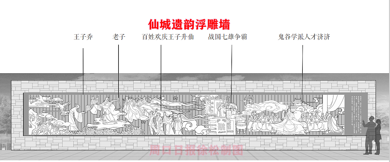 府東路北頭與鄲淮路交叉口占地近30畝的文化廣場(chǎng)是調(diào)水渠“三段銜一園”景觀中核心形象段之一。除了綠樹、百花、清流、步道,以及音樂燈光噴泉、西側(cè)建設(shè)有接近生態(tài)自然的親水觀光平臺(tái)之外,這里的5塊浮雕文化墻值得我們深入了解。這組浮雕墻讓古老與現(xiàn)代在這里交相輝映,昭示著無論社會(huì)和科技如何進(jìn)步,源遠(yuǎn)流長(zhǎng)的傳統(tǒng)文化永遠(yuǎn)是鄲城人的情感歸宿和精神家園。文化廣場(chǎng)的園路、綠地、建筑等都以鄲城歷史文脈為中心,將現(xiàn)代生活元素與歷史文化元素有機(jī)結(jié)合,營(yíng)造了一個(gè)文化與生態(tài)自然融合的新地標(biāo)。