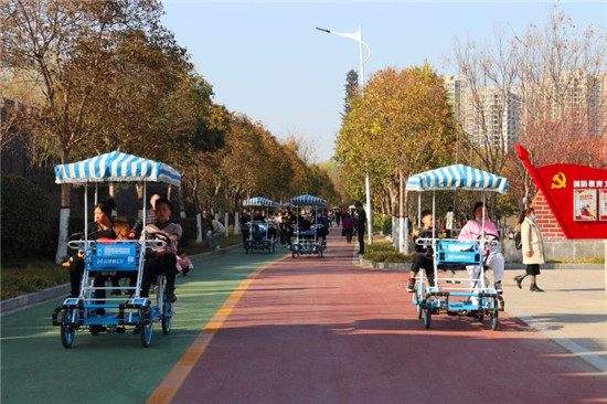 “今天真暖和?!?月19日,風(fēng)和日麗,周口國(guó)防教育園內(nèi)湖水蕩漾,四周的迎春花、梅花相繼開放,吸引了許多市民帶著孩子前往踏春賞花,接受國(guó)防教育。周口日?qǐng)?bào)·周道客戶端記者 高洪馳 攝