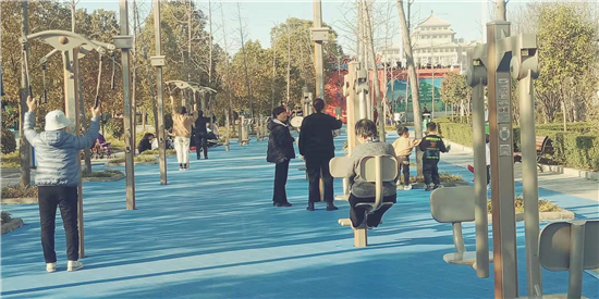 在足球場(chǎng),市民有的在快走,有的在跑步,有的在拉伸,也有的家長(zhǎng)帶著孩子玩球,一片其樂(lè)融融的景象。