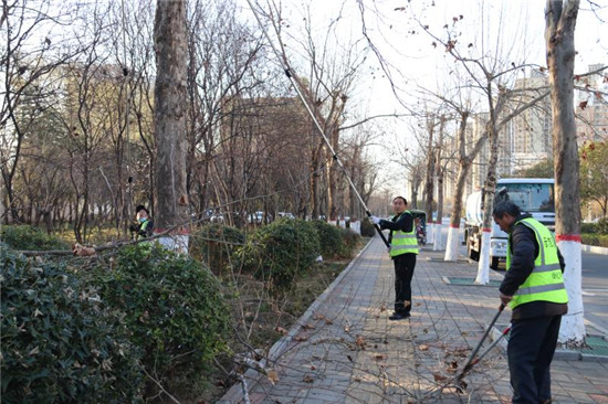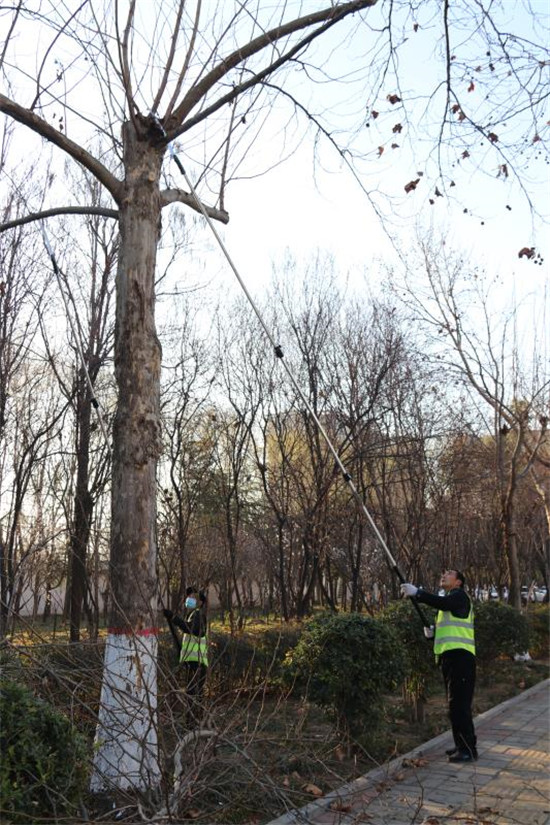 2月21日,城鄉(xiāng)一體化示范區(qū)城管局幾名市政管理人員在修剪周口大道兩旁的行道樹。據了解,通過一年的生長,行道樹衍生了許多無用枝條,如果對這些無用枝條不進行修剪,勢必影響今年的長勢。目前,道路兩邊的行道樹開始發(fā)芽,正是一年當中修剪的有利時機。城鄉(xiāng)一體化示范區(qū)城管局每天出動三班技術人員,對轄區(qū)內的行道樹進行修剪。