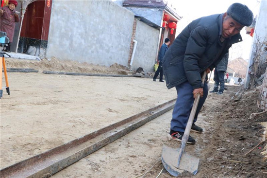 在宋河鎮(zhèn)劉橋村,支部書記張殿魁正在帶領(lǐng)村民平整路面。“我們村的主街道幾年前就通了水泥路,但是部分小巷子因經(jīng)費(fèi)不足一直沒有修通?!睆埖羁f,年初鎮(zhèn)黨委組織召開全鎮(zhèn)在外返鄉(xiāng)人士優(yōu)秀代表座談會,得到了在外鄉(xiāng)賢的積極支持,部分鄉(xiāng)賢捐款,帶動村內(nèi)群眾籌集費(fèi)用,現(xiàn)在水泥路即將覆蓋全村大街小巷。
