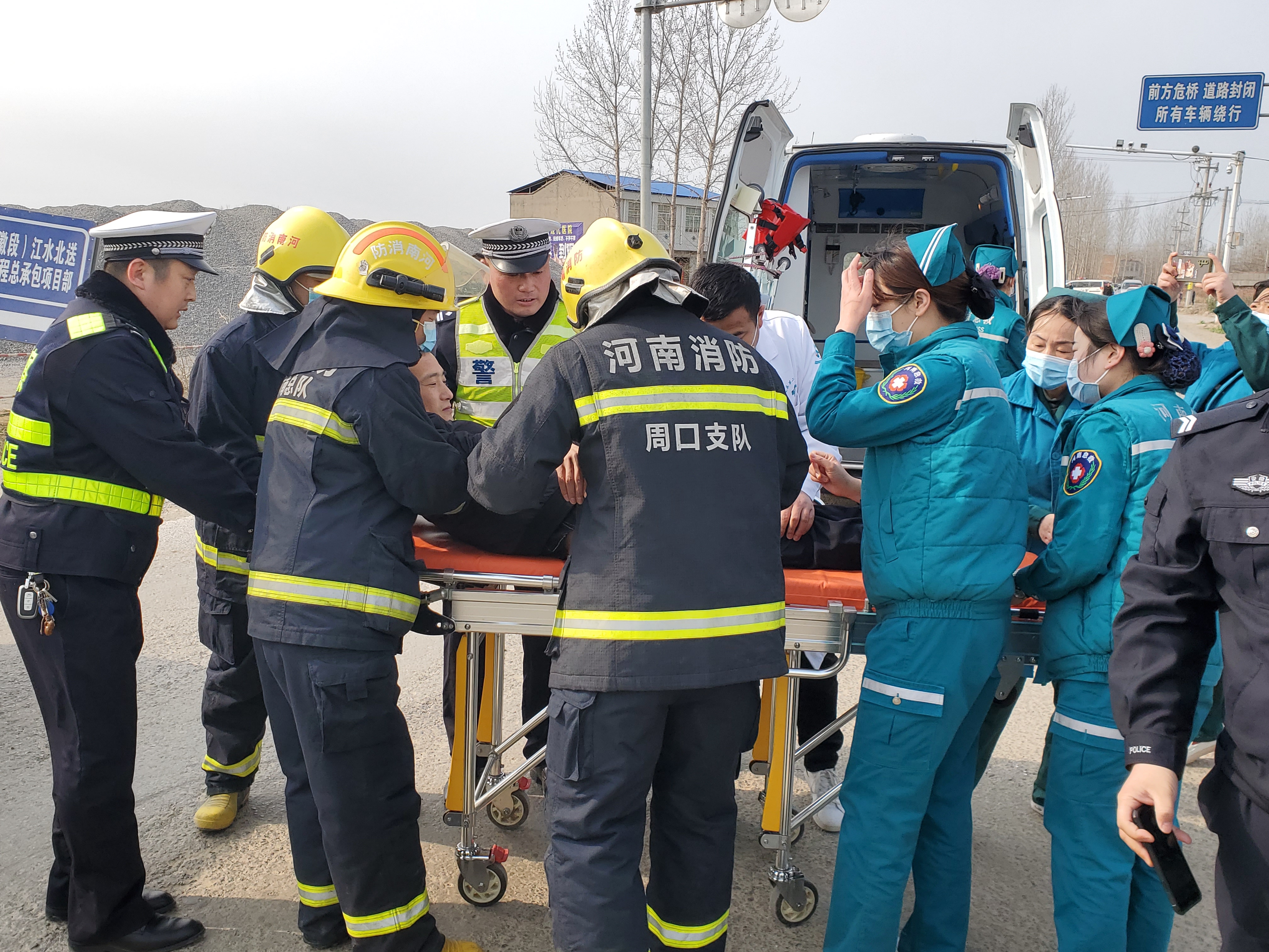 為提高冬季惡劣天氣條件下突發(fā)道路交通事故應(yīng)急處置能力、各部門之間的協(xié)同作戰(zhàn)以及應(yīng)急指揮系統(tǒng)的組織協(xié)調(diào)能力,最大限度減少因交通事故導致的人員傷亡,確保人民群眾生命財產(chǎn)安全,鄲城縣公安交通警察大隊聯(lián)合淮陽區(qū)公安交通警察大隊和安徽省亳州市公安交通警察支隊四大隊雙溝中隊,及鄲城縣公安局南豐鎮(zhèn)派出所,應(yīng)急管理、鄲城縣麗清醫(yī)院,鄲城縣中心醫(yī)院,道路基金救助辦公室等部門開展了道路交通事故快速發(fā)現(xiàn)、及時救援、有效救治、妥善救助的“四位一體”聯(lián)動型應(yīng)急處置演練活動。